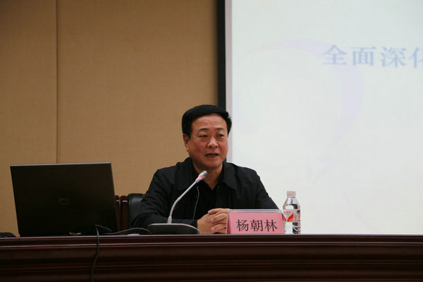 自治區(qū)國資委楊朝林副巡視員在會上作專題輔導(dǎo)報告