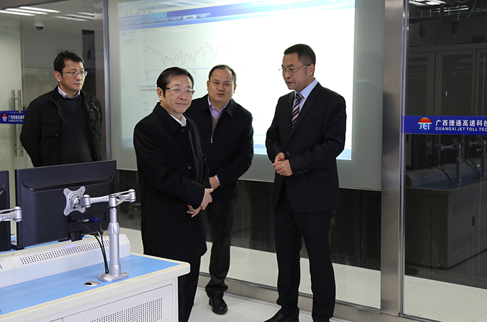 高雄深入了解了廣西ETC項目攻堅及實現(xiàn)全國聯(lián)網(wǎng)后運營情況,充分肯定了新發(fā)展集團在科技、人才領(lǐng)域的突出優(yōu)勢,特別是近期在參與智慧交通、智慧城市建設(shè)中所作出的努力和貢獻。高雄一行參觀了建設(shè)在捷通公司的全區(qū)ETC系統(tǒng)中心機房,認(rèn)真聽取了呂毅關(guān)于我區(qū)ETC系統(tǒng)運營狀況、八桂行卡發(fā)行量、機房設(shè)備及安裝運轉(zhuǎn)、車載OBU裝載使用等情況匯報。