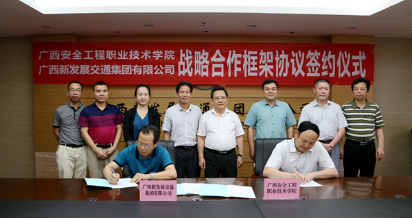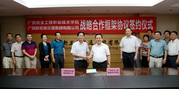 黎志逘祝賀雙方正式建立戰(zhàn)略合作伙伴關(guān)系。他說(shuō),廣西安全工程職業(yè)技術(shù)學(xué)院是經(jīng)廣西壯族自治區(qū)人民政府批準(zhǔn)成立、教育部備案的公辦全日制普通高等職業(yè)學(xué)院,隸屬?gòu)V西壯族自治區(qū)安全生產(chǎn)監(jiān)督管理局管理,是廣西唯一一所、全國(guó)第三所專門培養(yǎng)安全類高等專業(yè)技術(shù)人才的現(xiàn)代化職業(yè)學(xué)院。為了深入貫徹黨的十八屆六中全會(huì)和習(xí)近平總書記、李克強(qiáng)總理關(guān)于安全生產(chǎn)工作的重要指示批示精神,推動(dòng)企業(yè)落實(shí)安全生產(chǎn)主體責(zé)任,在全社會(huì)凝聚弘揚(yáng)安全發(fā)展理念、支持安全生產(chǎn)的共識(shí),“十三五”期間乃至更長(zhǎng)一個(gè)時(shí)期,雙方將建立互信、互補(bǔ)、互援的戰(zhàn)略合作關(guān)系,開啟校企全面深入合作的新篇章。通過(guò)深入合作交流,促進(jìn)了廣西安全工程職業(yè)技術(shù)學(xué)院發(fā)展,提升了廣西新發(fā)展交通集團(tuán)有限公司在安全生產(chǎn)方面的實(shí)力,最終實(shí)現(xiàn)雙方的共贏。