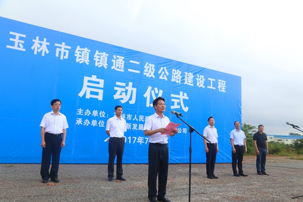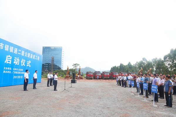 玉林市交通運輸局局長何東真主持儀式。玉林市市交運局、發(fā)改委、住建委、國土局、林業(yè)局等相關(guān)部門負責人,各縣(市、區(qū))政府分管交通工作有關(guān)部門負責人、興業(yè)縣干群代表以及新發(fā)展集團下屬企業(yè)代表參加了啟動儀式。(陳福喜 文/圖)