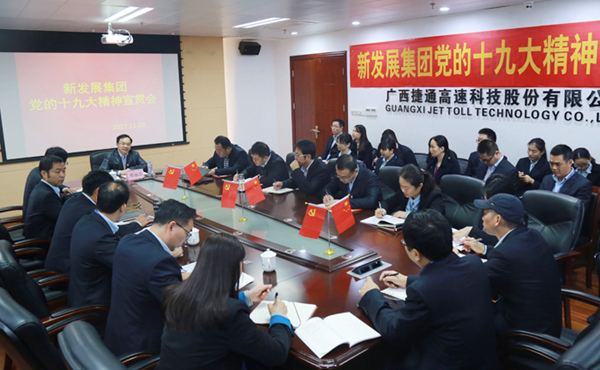11月28日上午,集團公司總會計師鄧遠(yuǎn)志來到捷通公司宣講黨的十九大精神,并開展工作調(diào)研。捷通公司黨總支班子及總部人員和南寧市自營網(wǎng)點負(fù)責(zé)人近70人參加了學(xué)習(xí)。