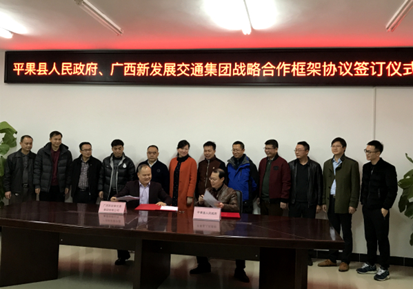 12月13日,集團(tuán)公司與平果縣人民政府簽訂戰(zhàn)略合作框架協(xié)議,謀劃推動(dòng)更多與平果縣相關(guān)的項(xiàng)目納入自治區(qū)和國(guó)家層面重大項(xiàng)目盤子,推動(dòng)平果縣基礎(chǔ)設(shè)施建設(shè),進(jìn)一步提升平果縣經(jīng)濟(jì)社會(huì)發(fā)展水平。