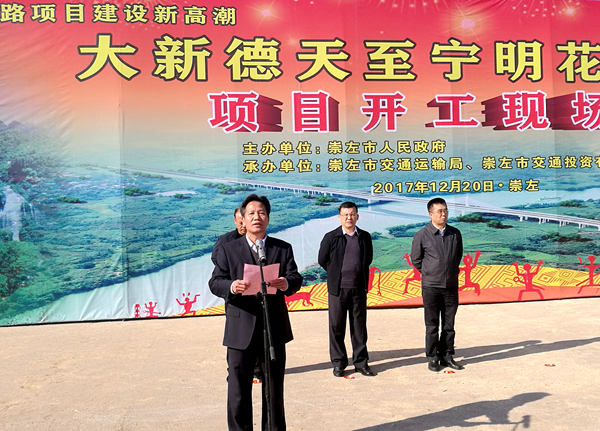 12月20日,崇左市大新德天至寧明花山公路舉行開工儀式,集團公司黨委書記、董事長朱堅和,集團公司黨委副書記、副董事長、總經(jīng)理唐咸秋,路橋工程集團及設(shè)計院有限公司相關(guān)負(fù)責(zé)人參加了開工儀式。