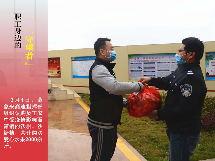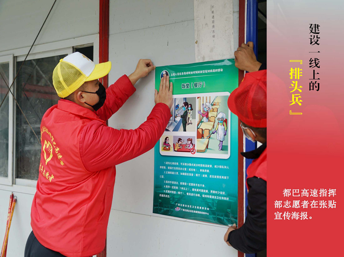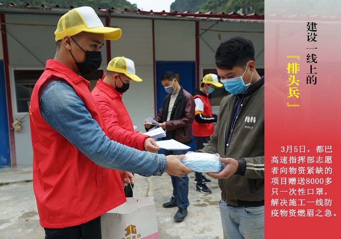 在項目建設工地、收費站、服務區(qū)、駐地街道社區(qū),一個個身穿紅馬甲、頭戴黃帽子的志愿者奔忙在廣西高速公路投資建設運營的戰(zhàn)“疫”前線;防疫宣傳、愛心認購、義務剪發(fā)······一幅幅暖心畫面不停呈現。